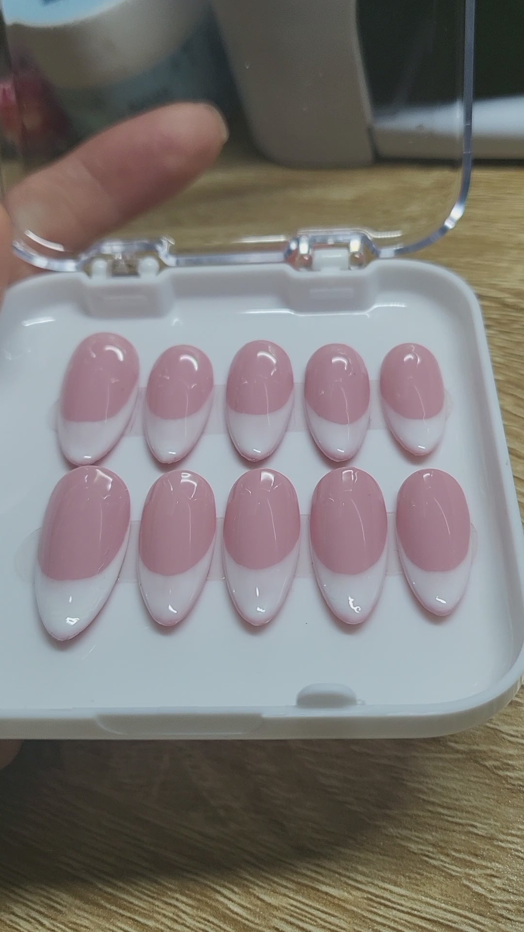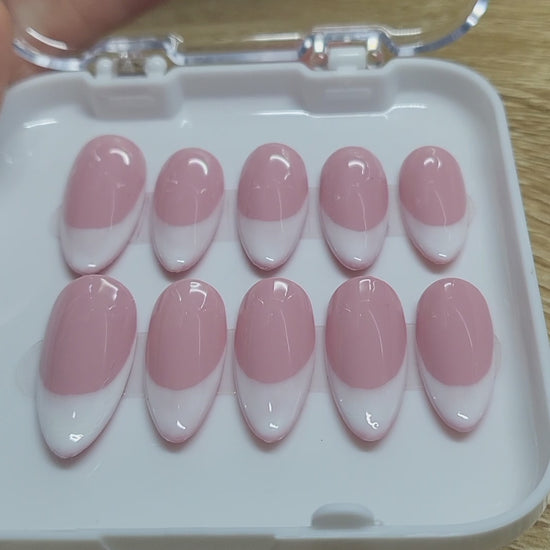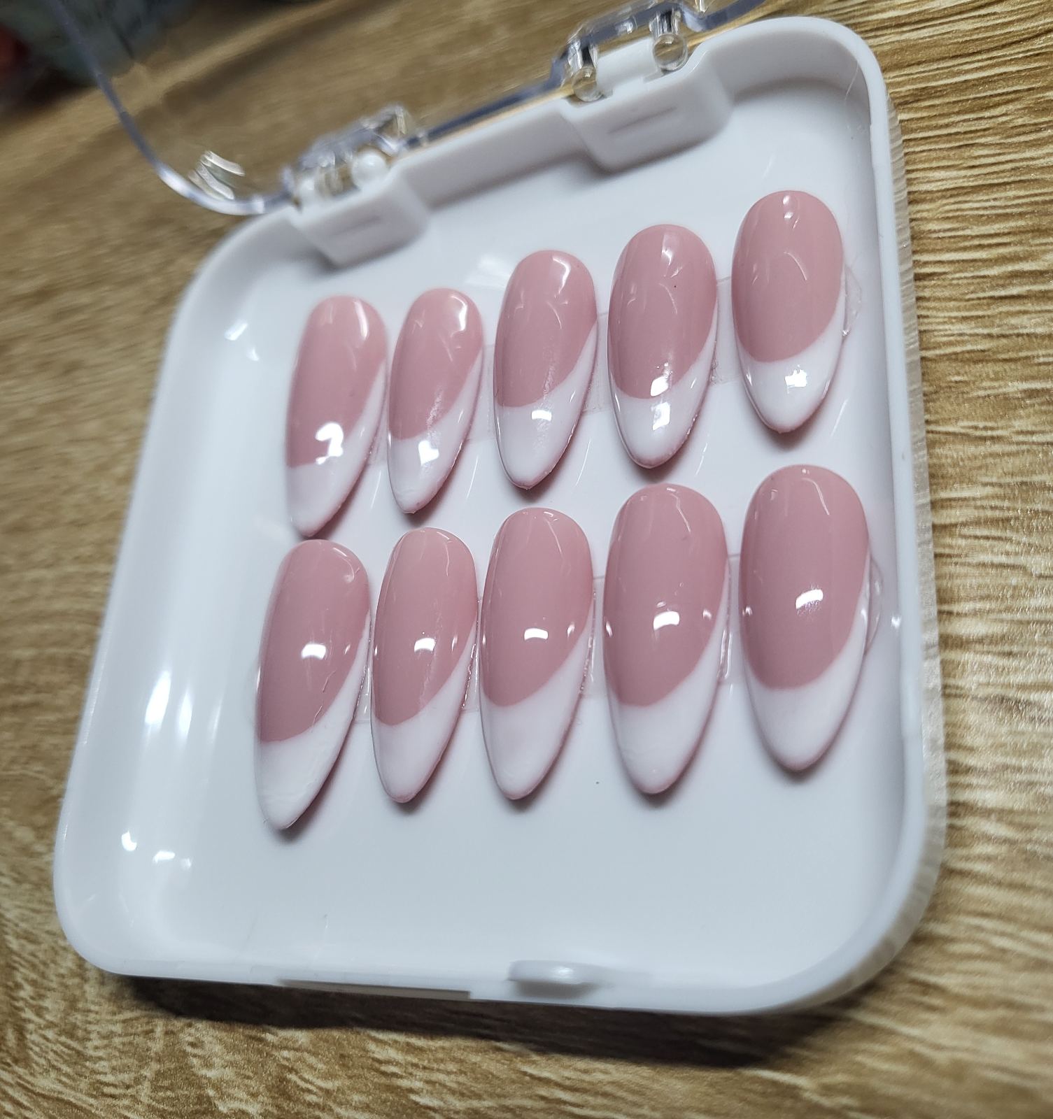 French nails with white tips, All time classic french press on nails , Almond medium length - 10 pieces.