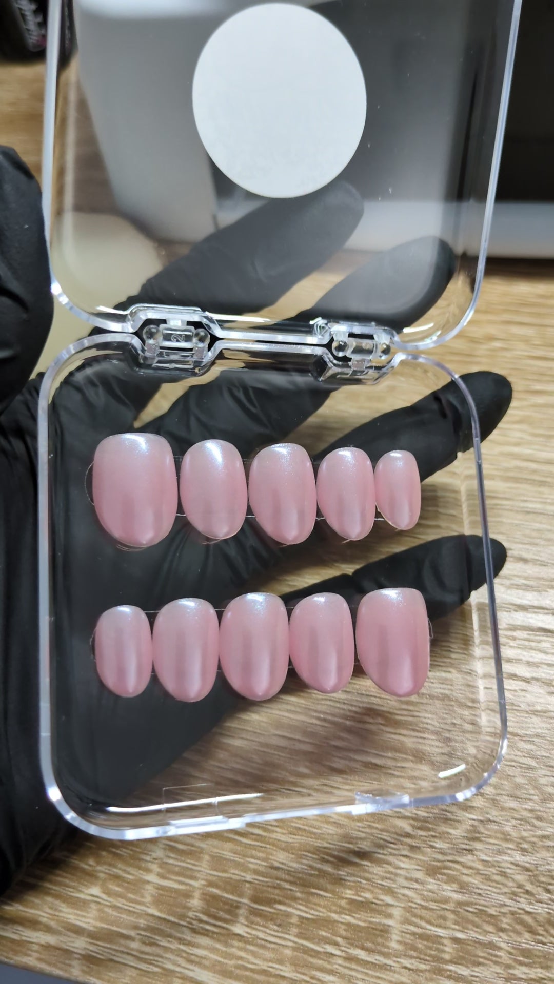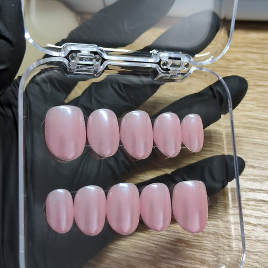 Pink pearly short oval press on nails set-10 pieces